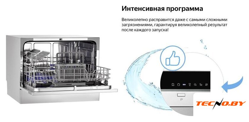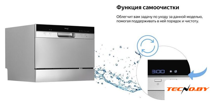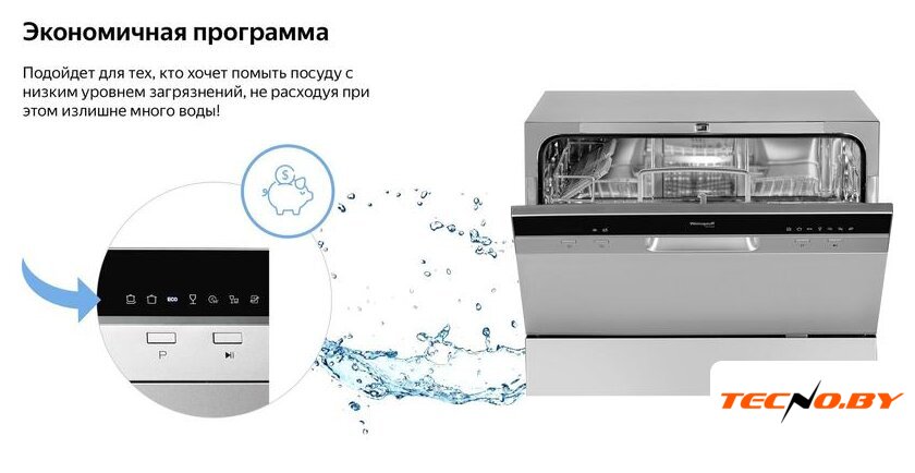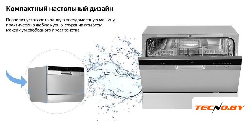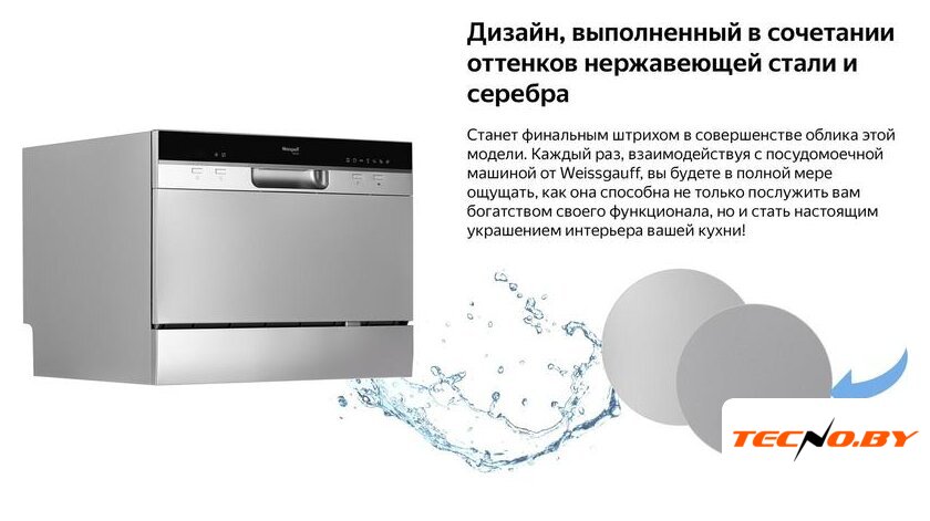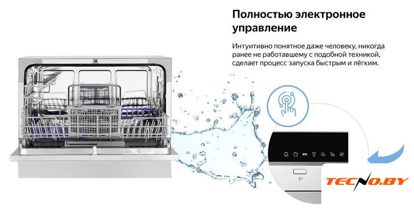 загрузка на 8 комплектов посуды, электронное управление, 7 программ, нержавеющая сталь цвет