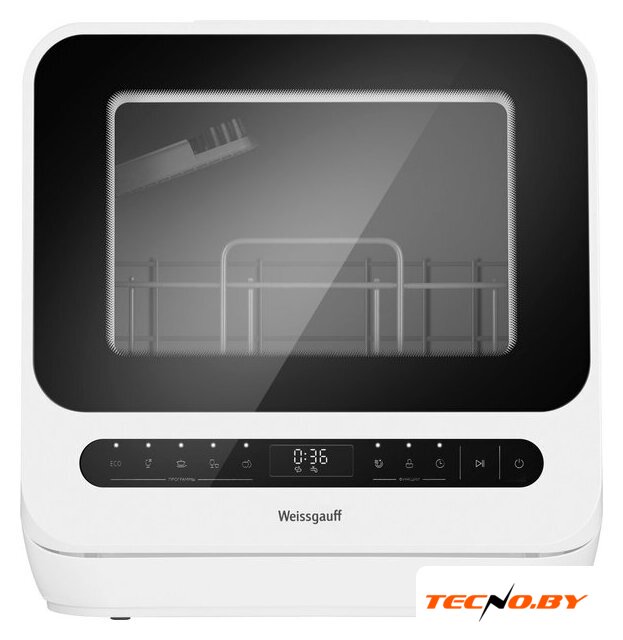 загрузка на 6 комплектов посуды, сенсорное управление, 4 программы, 56x50x46.5 см, белый цвет, сушка: стандартная (конденсация), индикация на полу: нет