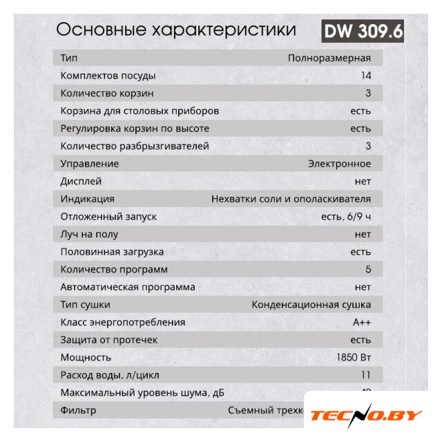 | Максимальная загрузка (комплекты посуды) | 14 |