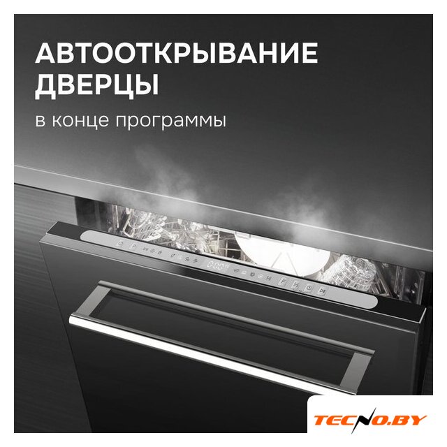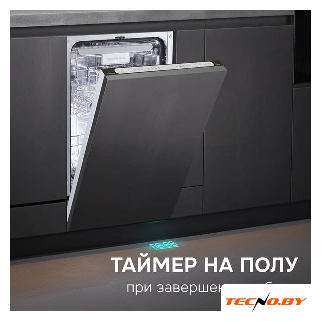 загрузка на 14 комплектов посуды, сенсорное управление, 6 программ, 59.8x55x82 см, черный цвет, сушка: вентиляционная, индикация на полу: луч