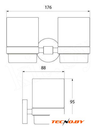 стакан для зубной щетки и пасты, настенная установка, стекло/металл