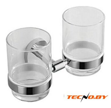 стакан для зубной щетки и пасты, настенная установка, металл/стекло