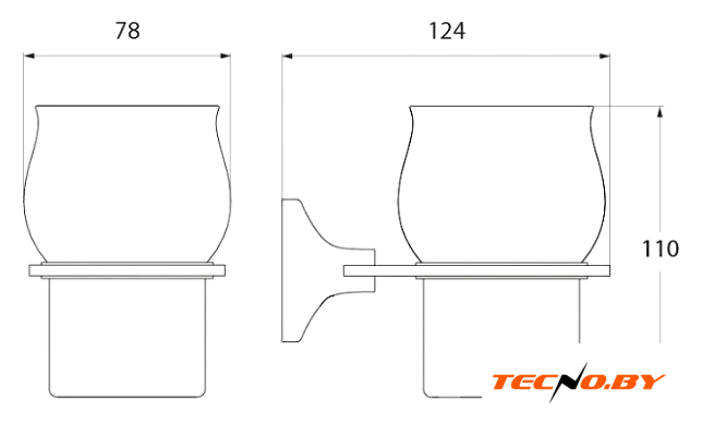 стакан для зубной щетки и пасты, настенная установка, стекло