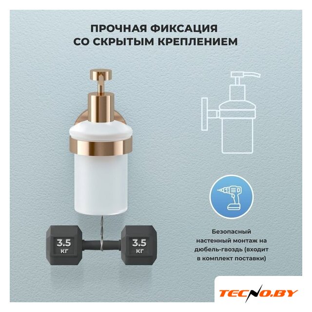 | Комплектация | Дозатор для жидкого мыла с держателем и крепежным комплектом для настенного монтажа |