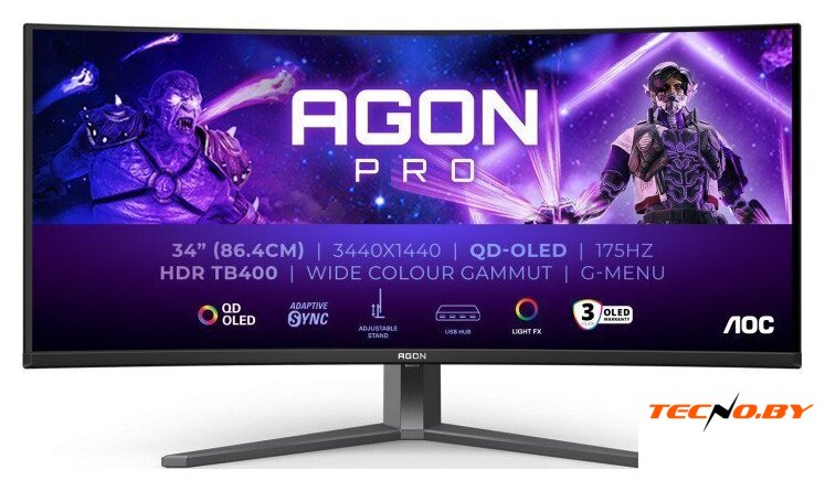 34", 21:9, 3440x1440, OLED, изогнутый (1800R), 175 Гц, AMD FreeSync Premium Pro, интерфейсы HDMI+DisplayPort+USB Type-C, регулировка высоты