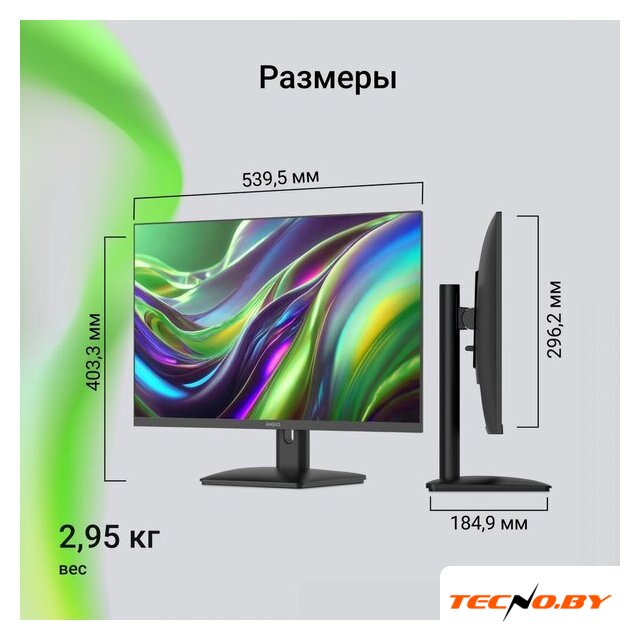 23.8", 1920x1080, 16:9, IPS, 100 Гц, глубина 8 бит, яркость 300 нит, динамики, HDMI+DisplayPort+D-Sub (VGA)