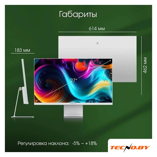 27", 16:9, 2560x1440, IPS, 320 Гц, глубина 8 бит + FRC, яркость 350 нит, HDMI+DisplayPort+USB Type-C, регулировка высоты, портретный режим