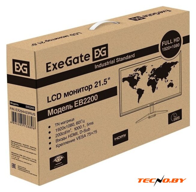 21.5", 16:9, 1920x1080, VA, 75 Гц, интерфейсы HDMI+D-Sub (VGA)