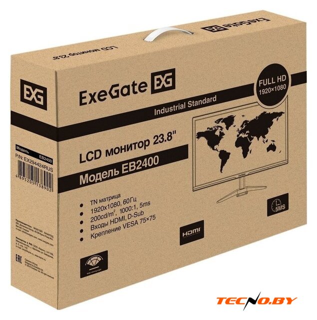 23.8", 16:9, 1920x1080, IPS, 75 Гц, AMD FreeSync, интерфейсы HDMI+D-Sub (VGA)