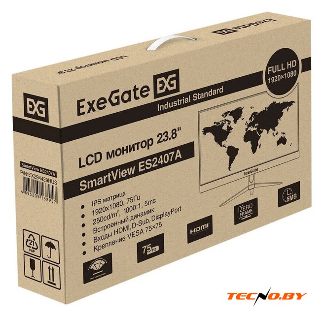 23.8", 16:9, 1920x1080, IPS, 75 Гц, AMD FreeSync, интерфейсы HDMI+DisplayPort+D-Sub (VGA)