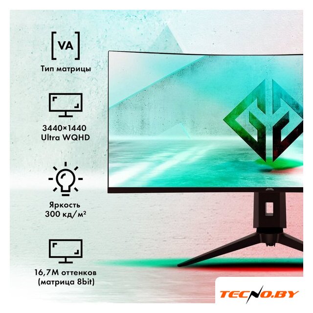34", 21:9, 3440x1440, VA, изогнутый (1000R), 165 Гц, AMD FreeSync Premium, интерфейсы HDMI+DisplayPort