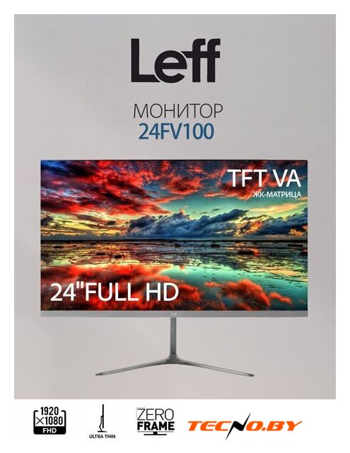 24", 16:9, 1920x1080, IPS, 100 Гц, интерфейсы HDMI+D-Sub (VGA)