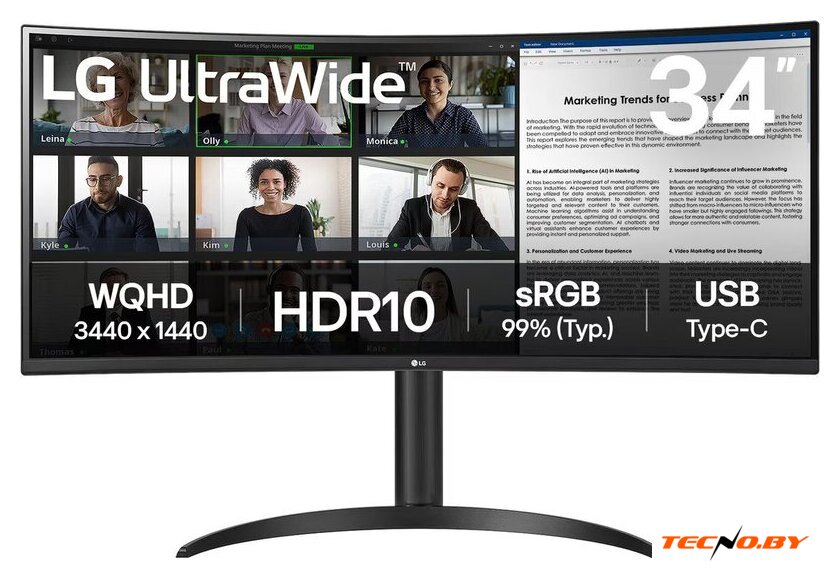 34", 21:9, 3440x1440, VA, изогнутый (1500R), 165 Гц, AMD FreeSync, динамики, интерфейсы HDMI+DisplayPort+USB Type-C, регулировка высоты, портретный режим