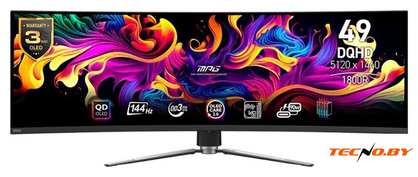 49", 32:9, 5120x1440, OLED, изогнутый (1800R), 240 Гц, AMD FreeSync Premium Pro, динамики, интерфейсы HDMI+DisplayPort+micro HDMI, регулировка высоты