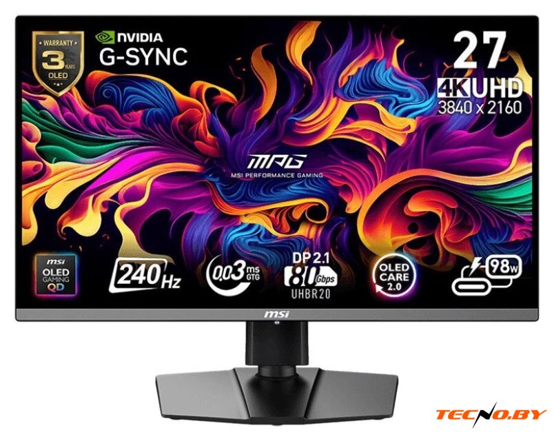 26.5", 16:9, 2560x1440, OLED, подсветка с квантовыми точками, 500 Гц, глубина 10 бит, яркость 300 нит, HDMI+DisplayPort, регулировка высоты, портретный режим