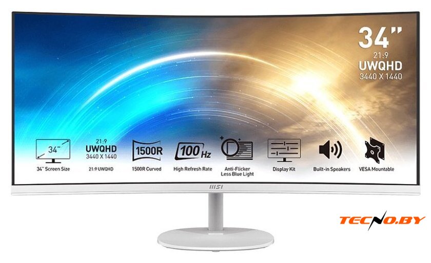 34", 21:9, 3440x1440, VA, изогнутый (1800R), 100 Гц, интерфейсы HDMI+DisplayPort
