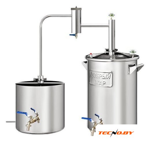 бытовой дистиллятор, нержавеющая сталь, объем перегонного куба 30 л, толщина стенок 1.5 мм, толщина дна 2 мм