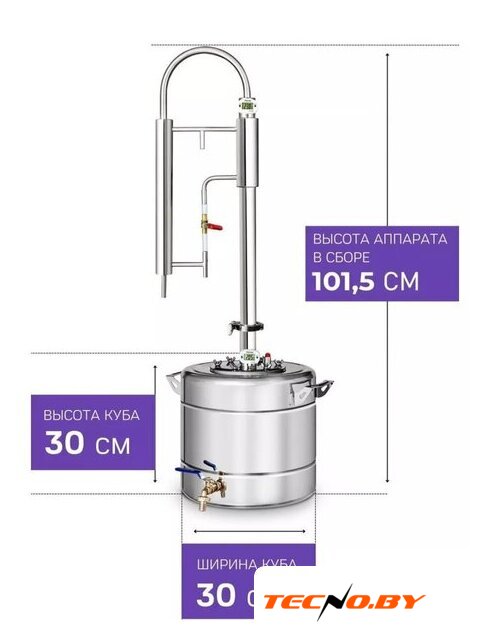 бытовой дистиллятор, нержавеющая сталь, объем перегонного куба 20 л