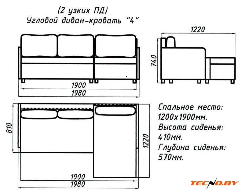 раскладной, механизм "клик-клак", настил пенополиуретан (поролон), длина 190 см, спальное место 190x110 см