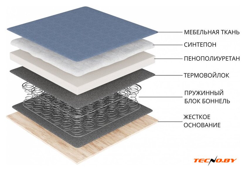 | Настил | пенополиуретан (поролон), пружинный блок "боннель" |