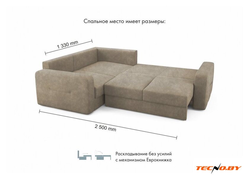 раскладной, механизм "еврокнижка", настил блок независимых пружин, длина 343 см, спальное место 296x153 см