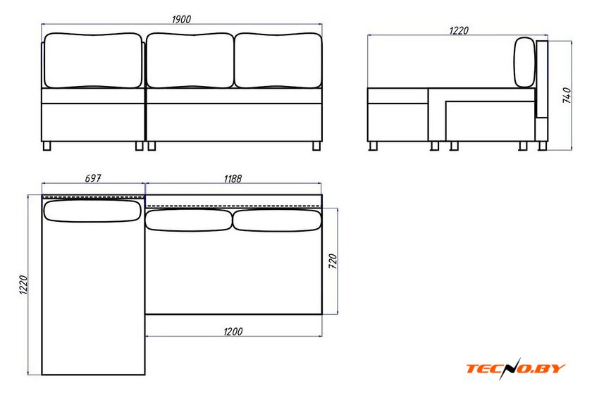 раскладной, механизм "еврокнижка", настил пенополиуретан (поролон), длина 190 см, спальное место 190x120 см