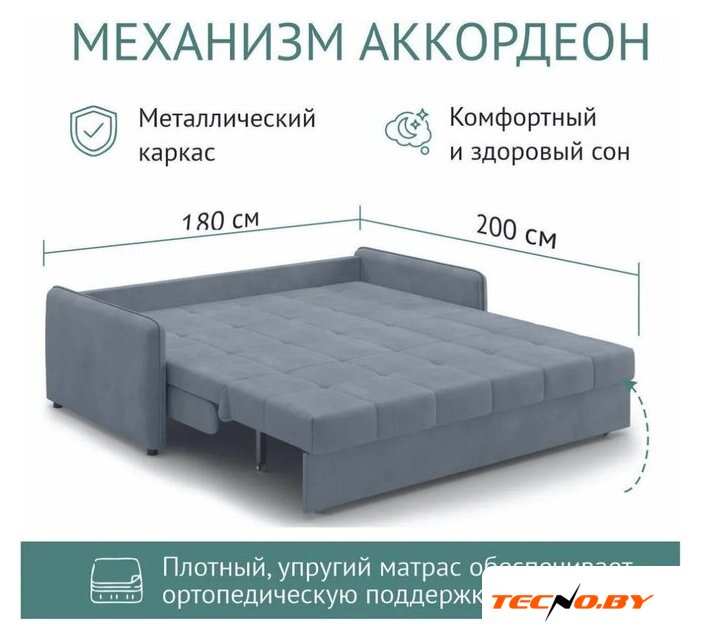 раскладной, механизм "еврокнижка", настил блок независимых пружин, длина 244 см, спальное место 198x153 см