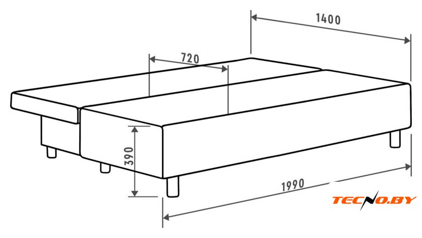 раскладной, механизм "еврокнижка", настил пенополиуретан (поролон), длина 199 см, спальное место 199x140 см