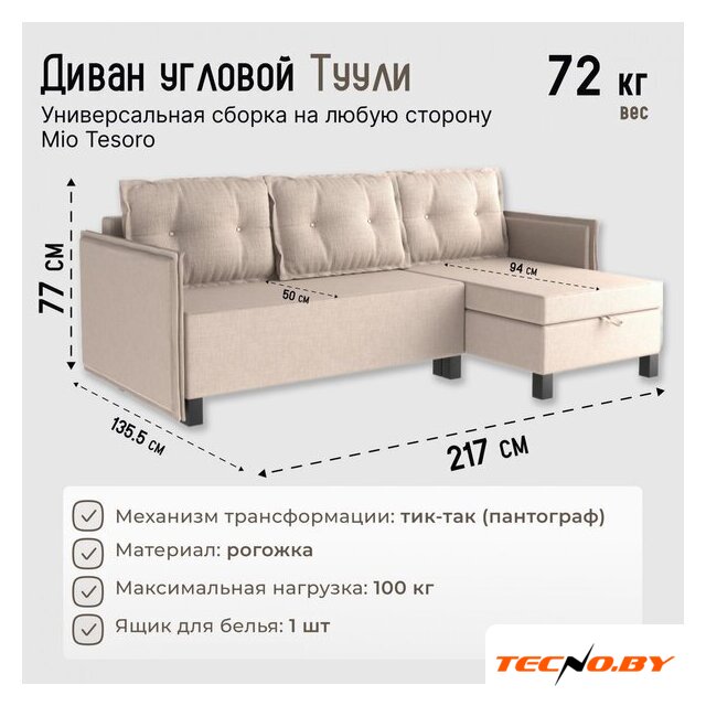 раскладной, механизм "тик-так (пантограф)", настил пенополиуретан (поролон)/пружинный блок "боннель", длина 217 см