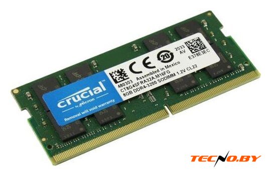 8 ГБ, 1 модуль DDR4 SO-DIMM, частота 3200 МГц, CL 22T, напряжение 1.2 В