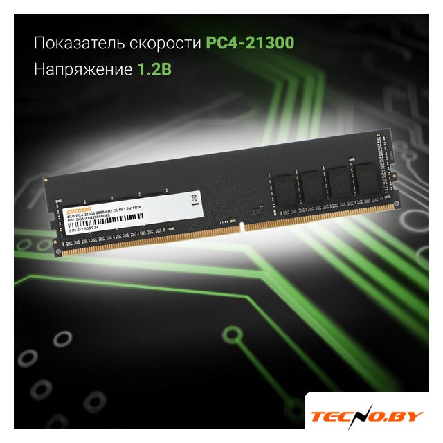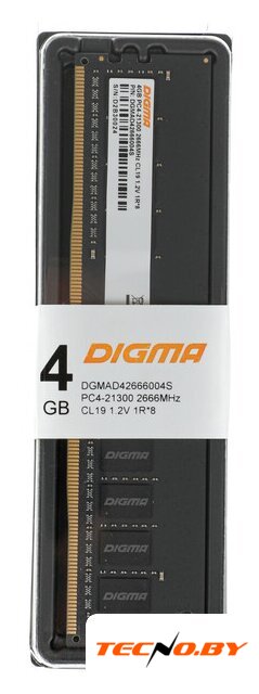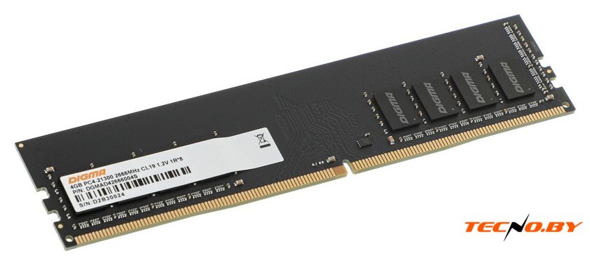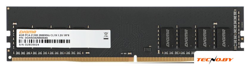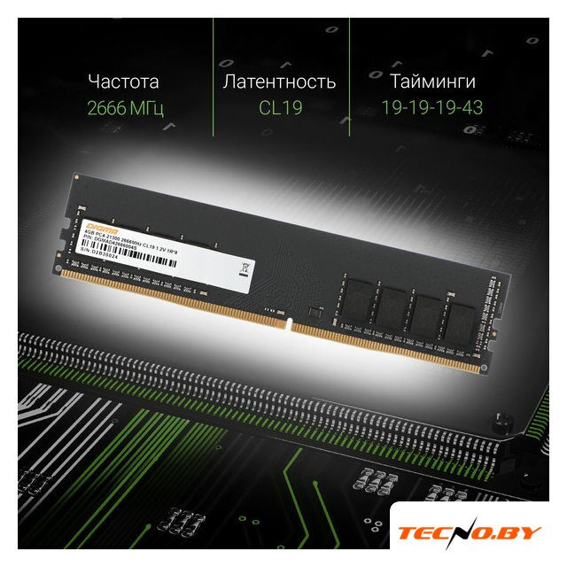 4 ГБ, 1 модуль DDR4 DIMM, частота 2666 МГц, CL 19T, тайминги 19-19-19-43, напряжение 1.2 В