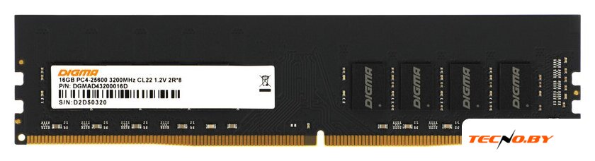 16 ГБ, 1 модуль DDR4 DIMM, частота 3200 МГц, CL 19T, тайминги 19-19-19, напряжение 1.2 В