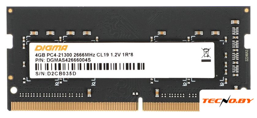 4 ГБ, 1 модуль DDR4 SO-DIMM, частота 3200 МГц, напряжение 1.2 В