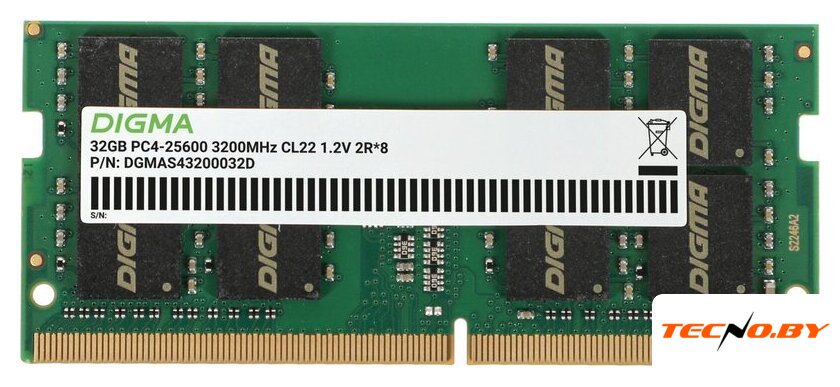 32 ГБ, 1 модуль DDR4 SO-DIMM, частота 2666 МГц, напряжение 1.2 В