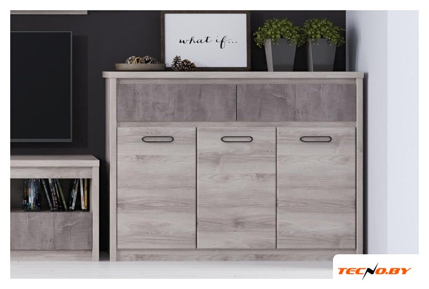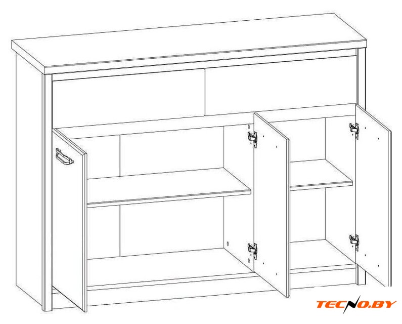 для гостиной, для спальни, для жилой комнаты, каркас ЛДСП, фасад ЛДСП, 4 ящика, 4 полки, 2 дверцы, 120.2x39.2x91.5 см