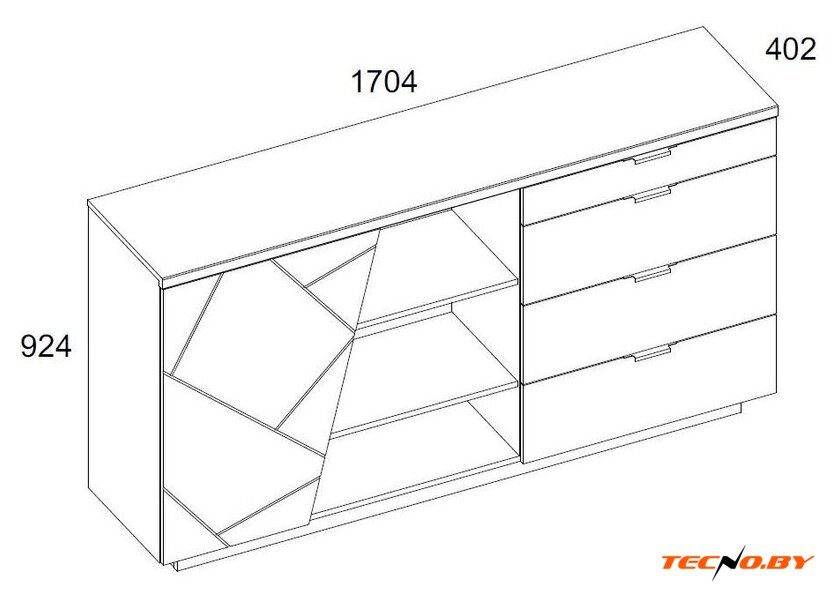 для гостиной, для офиса, для прихожей, для спальни, каркас ЛДСП, фасад ЛДСП, 2 ящика, 5 полок, 2 дверцы, 120x35.6x103 см