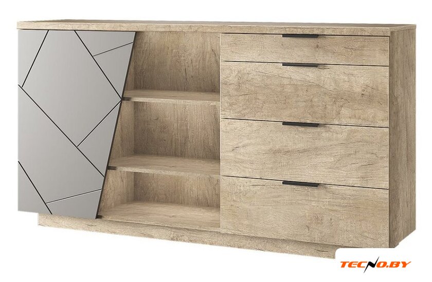 для гостиной, для жилой комнаты, для спальни, каркас ЛДСП, фасад МДФ, 6 ящиков, 200.8x42.2x53 см