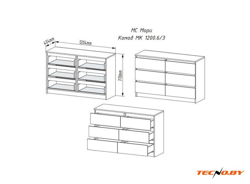 для гостиной, для детской, для жилой комнаты, для прихожей, для спальни, каркас ЛДСП, фасад ЛДСП, 6 ящиков, 120x45x73 см
