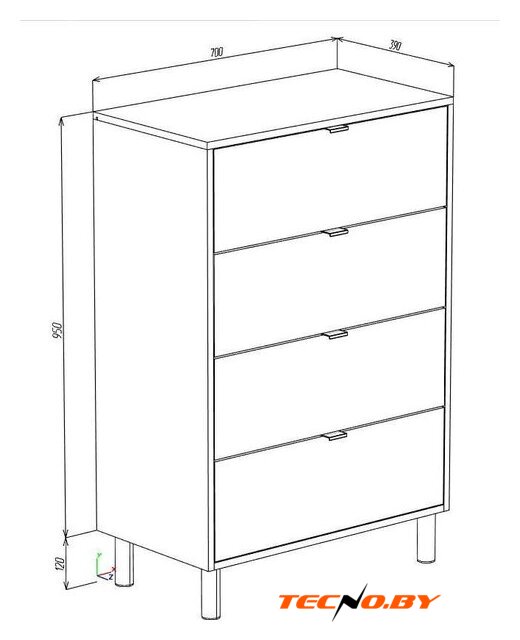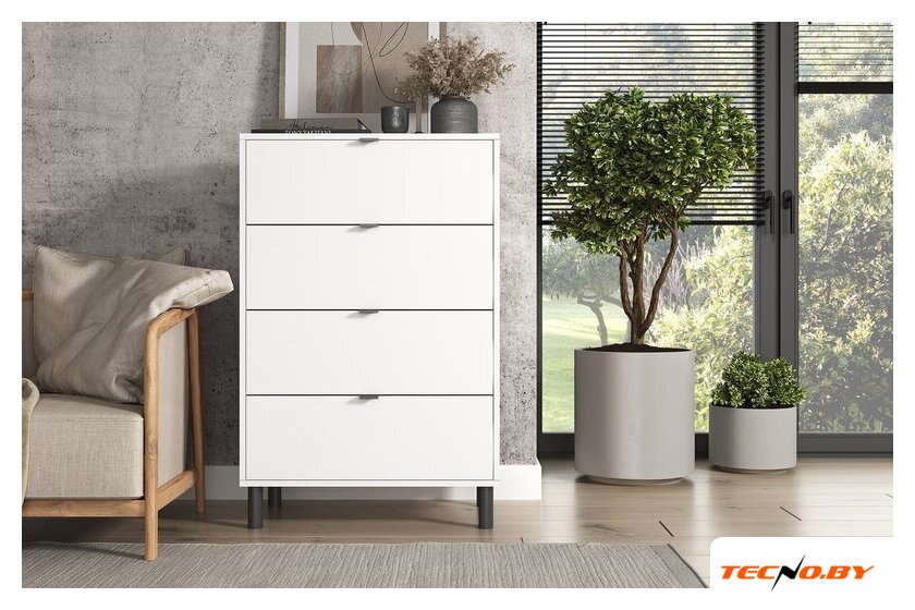 для гостиной, для жилой комнаты, для спальни, каркас ЛДСП, фасад ЛДСП, 4 ящика, 1 дверца, 100x42.8x85 см