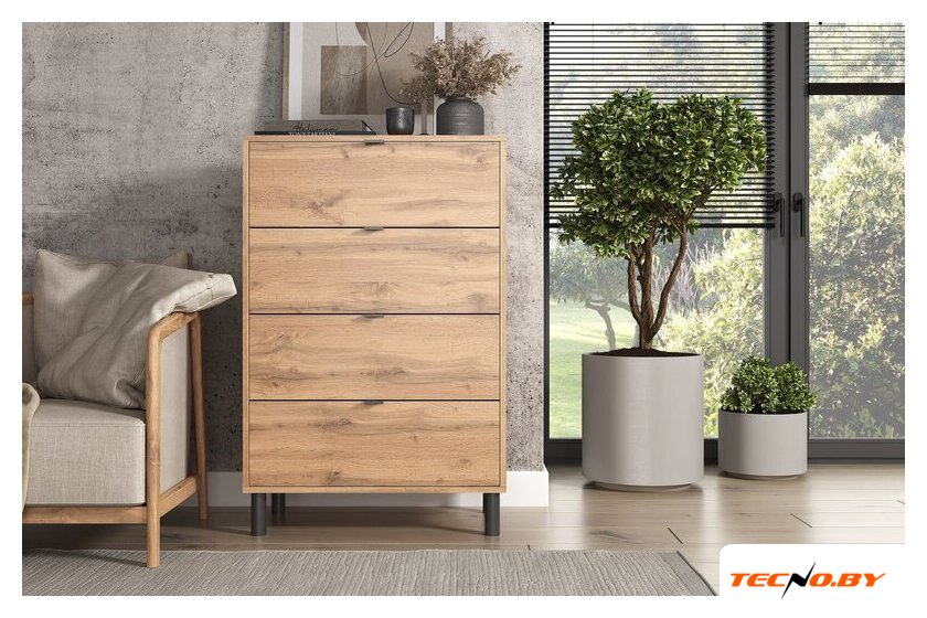 для гостиной, для жилой комнаты, для спальни, каркас ЛДСП, фасад ЛДСП, 4 ящика, 1 дверца, 100x42.8x85 см