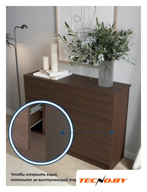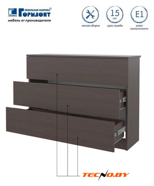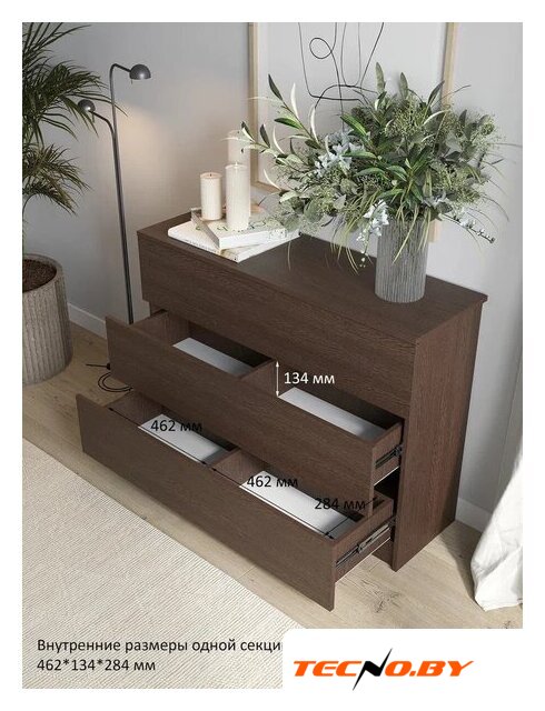 для гостиной, для жилой комнаты, для спальни, каркас ДСП, фасад ДСП, 3 ящика, 80.3x48x76.45 см