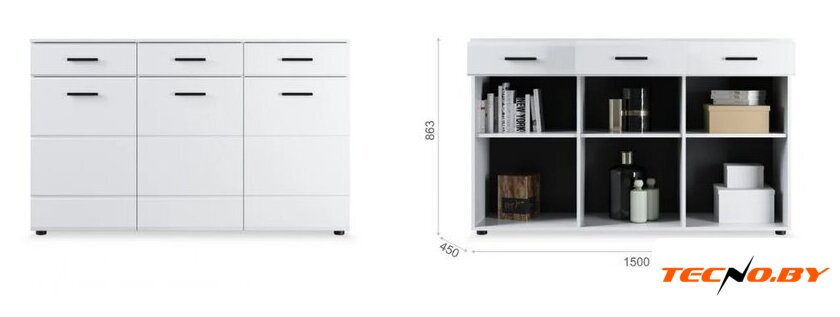 для гостиной, для жилой комнаты, для спальни, каркас ЛДСП+МДФ+ХДФ, фасад ЛДСП+МДФ, 4 ящика, 4 полки, 2 дверцы, 166.5x45.5x90.5 см