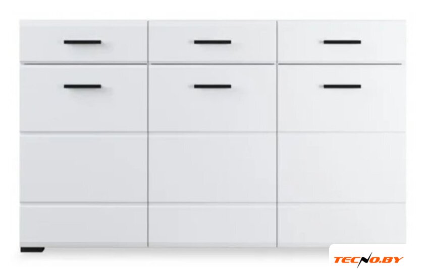 для гостиной, каркас ЛДСП, фасад МДФ+стекло, 3 ящика, 6 полок, 3 дверцы, 154.5x44.5x90.5 см