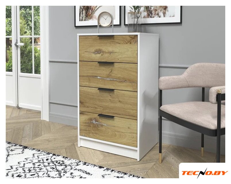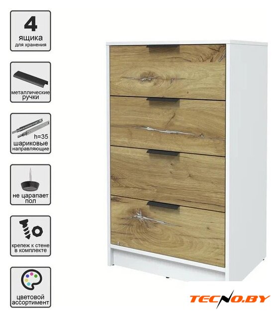 для гостиной, для жилой комнаты, для спальни, каркас ДСП, фасад ДСП, 4 ящика, 80.3x48x98.85 см