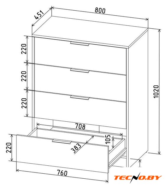 для гостиной, для жилой комнаты, для спальни, каркас ДСП, фасад ДСП, 5 ящиков, 80.3x48x121.25 см