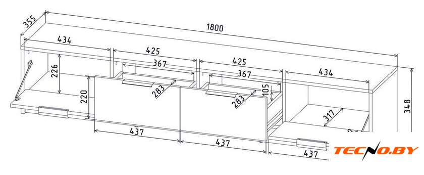 для гостиной, для жилой комнаты, для спальни, каркас ДСП, фасад ДСП, 4 ящика, 160.3x48x54 см