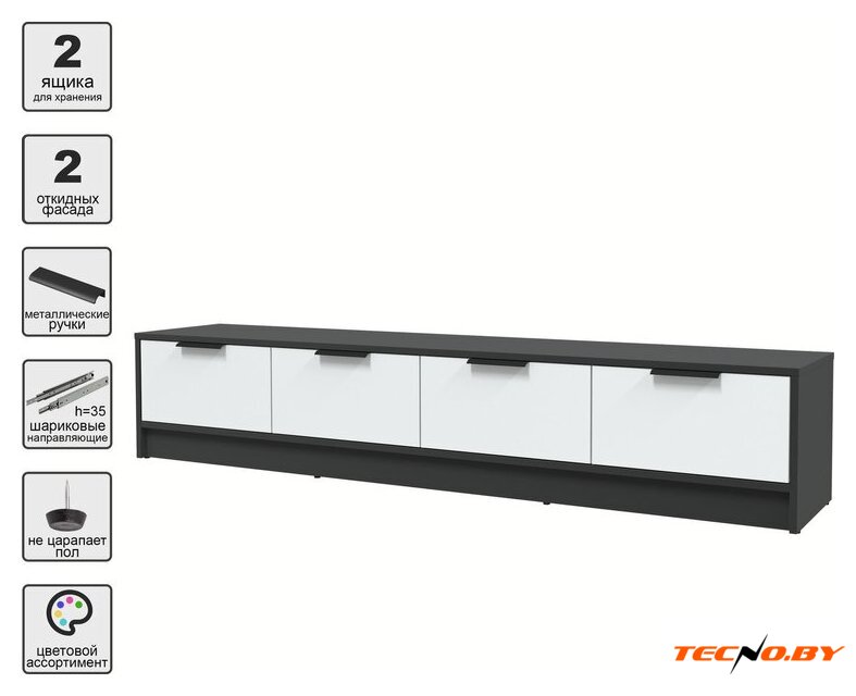для гостиной, для жилой комнаты, для телевизора, каркас ЛДСП, фасад ЛДСП+МДФ, 2 ящика, 160.4x40.2x26.7 см