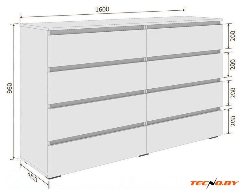 для детской, для спальни, для гостиной, для телевизора, каркас ДСП, фасад ДСП, 6 ящиков, 160.3x48.2x77 см