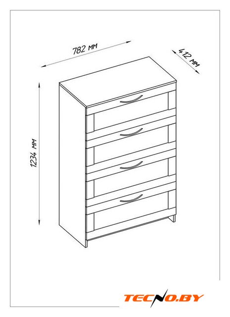 для гостиной, для жилой комнаты, для спальни, каркас ЛДСП, фасад МДФ, 3 ящика, 82.8x41x80 см