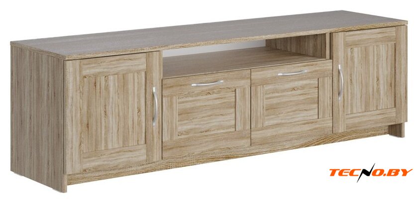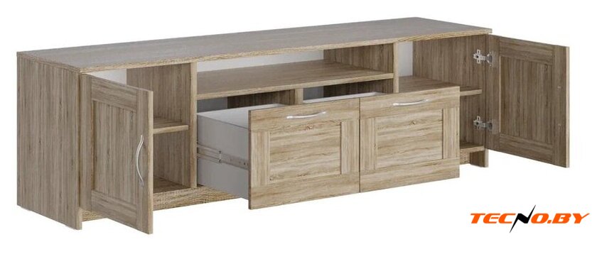 для гостиной, для жилой комнаты, для телевизора, каркас ДСП+МДФ, фасад ДСП, 3 ящика, 3 полки, 131.2x41.4x62.2 см